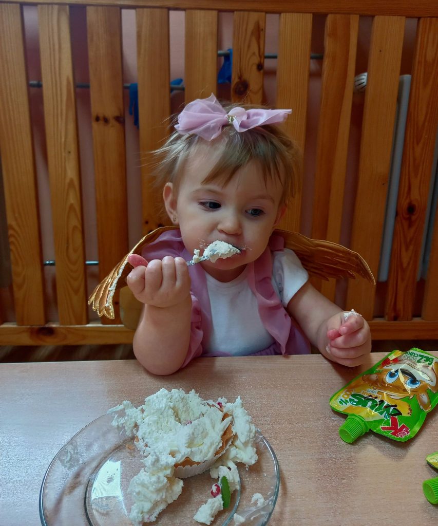 Podpatrywanie przyszłości zakończyło się wspólną zabawą przy muzyce i śpiewaniem znanych piosenek. Nie zabrakło również słodkiego poczęstunku Dzień ten dostarczył wielu przeżyć i emocji, a przede wszystkim stał się okazją do rozbudzenia dziecięcej ciekawości oraz chęci poznawania naszej ludowej tradycji.